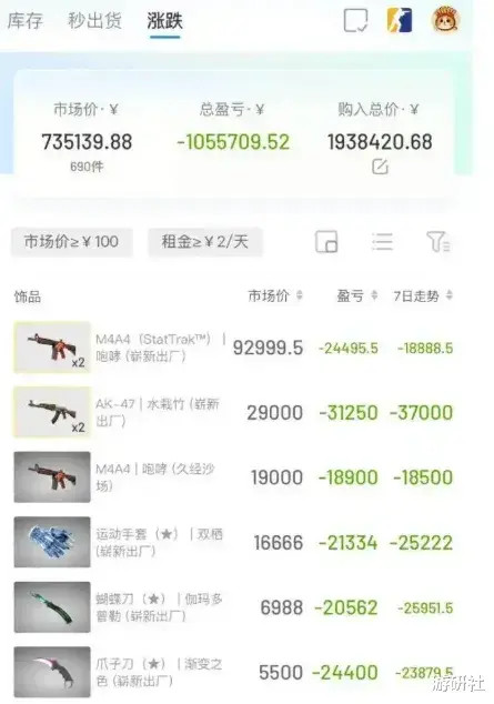 而对于我国玩家来说,由于有着“必须明确公开物品抽取概率”的规定以及如今抽卡二游的盛行,相比抽卡赌博,一提起《CS2》可能更多人会想起去年10月份时,由于官方调整了高级饰品的合成规则,导致原本的高端饰品在二级市场大幅跳水,单日直接蒸发近20亿美元,不少投机者哀嚎一片的景象。