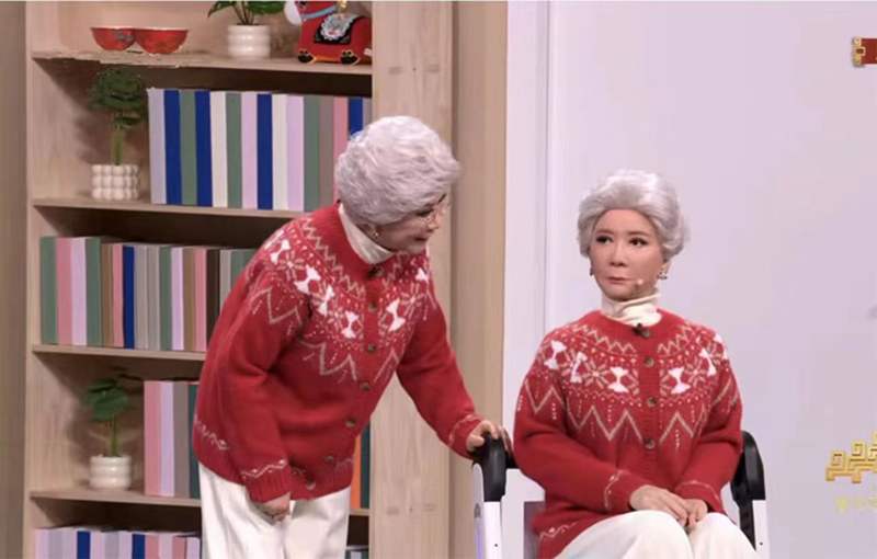 “假奶奶”是在松延动力第二代仿生人头平台基础上,根据节目需求进行定制开发而成。“其搭载了32个主动自由度,并在面皮材质铂金硅胶中,添加了高分子材料,增强了仿生人脸的拉伸自然度与耐久性,自研机器人面部驱动算法和多模态交互大模型更让仿生人形机器人具备近乎真人的自然感。”张淼透露。